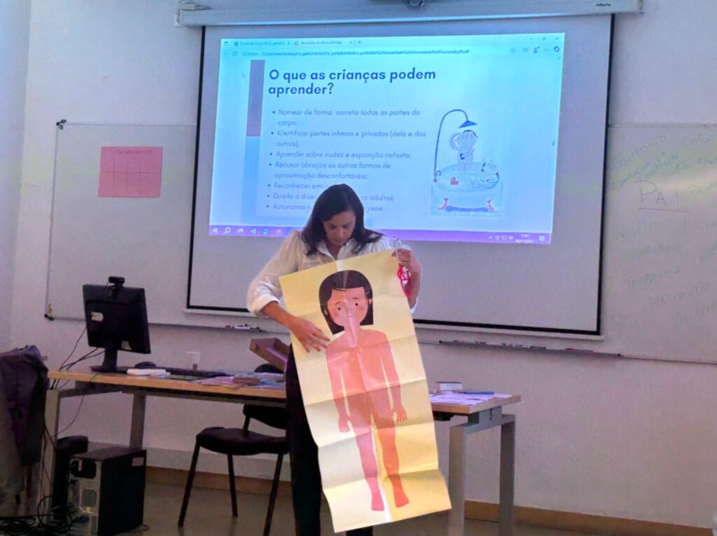 A 3ª sessão, que decorreu no dia 8 de novembro, manteve a energia e a boa disposição característica do grupo. Com Nuno Martins, refletiu-se sobre paternidade, educação positiva e autocuidado, enquanto durante a tarde se ficaram a conhecer técnicas e procedimentos de prevenção da violência contra crianças e jovens com Inês Coutinho. O dia terminou com a intervenção da psicóloga e sexóloga Vânia Beliz, que apresentou estratégias práticas para trabalhar o consentimento desde a primeira infância e prevenir a violência sexual.