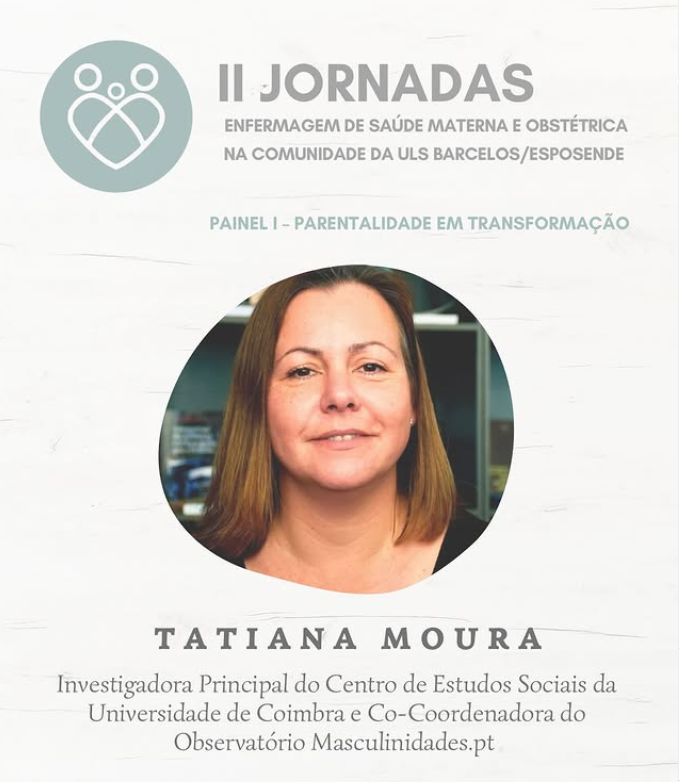 Ao longo dos dias 16 e 17 de outubro de 2025 realizam-se, em Barcelos, as II Jornadas de Enfermagem de Saúde Materna e Obstétrica na Comunidade da ULS de Barcelos/Esposende. Tatiana Moura, cocoordenadora do Observatório Masculinidades.pt, irá participar nas Jornadas, dinamizando o painel “Parentalidade em Transformação”.